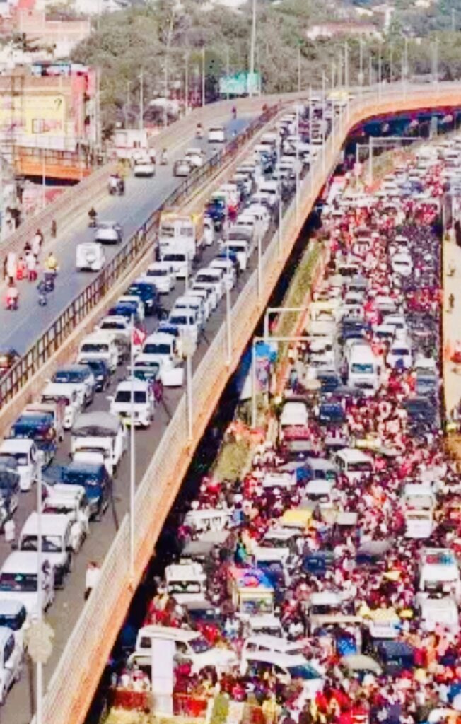 ਲਖਨਊ-ਅਯੁੱਧਿਆ-ਪ੍ਰਤਾਪਗੜ੍ਹ ਵਾਲੇ ਪਾਸੇ ਤੋਂ ਆਉਣ ਵਾਲੀਆਂ ਗੱਡੀਆਂ ਮਲਾਕਾ ਤੋਂ ਸ਼ਹਿਰ ’ਚ ਦਾਖਲ ਹੁੰਦੀਆਂ ਹਨ। ਉਨ੍ਹਾਂ ਦੀ ਪਾਰਕਿੰਗ ਬੇਲਾ ਕੱਚਰ ’ਚ ਬਣਾਈ ਗਈ ਹੈ। ਮੌਜੂਦਾ ਸਥਿਤੀ ਇਹ ਹੈ ਕਿ ਪਿਛਲੇ 24 ਘੰਟਿਆਂ ’ਚ ਮਲਾਕਾ ਤੇ ਇਸ ਦੇ ਆਲੇ-ਦੁਆਲੇ ਦੇ 20 ਕਿਲੋਮੀਟਰ ਦੇ ਪੂਰੇ ਖੇਤਰ ’ਚ ਭਾਰੀ ਟ੍ਰੈਫਿਕ ਜਾਮ ਹੈ। ਅਯੁੱਧਿਆ ਨੇੜੇ ਗੋਂਡਾ ਜ਼ਿਲੇ ਦੀ ਰਹਿਣ ਵਾਲੀ ਸੀਮਾ ਸ਼ਨਿੱਚਰਵਾਰ ਨੂੰ ਸ਼ਾਮ ਸਾਢੇ 7 ਵਜੇ ਆਪਣੀ ਕਾਰ ਤੋਂ ਚੱਲੀ ਸੀ। ਐਤਵਾਰ ਸਵੇਰੇ 11 ਵਜੇ ਵੀ ਉਹ ਸੰਗਮ ਨਹੀਂ ਪਹੁੰਚ ਸਕੀ। ਬੇਲਾ ਕਛਾਰ ’ਚ ਹੀ ਜਾਮ ਵਿਚਕਾਰ ਫਸੀ ਰਹੀ। ਉਸਦਾ ਕਹਿਣਾ ਹੈ ਕਿ ਸਾਨੂੰ ਜਾਮ ਬਾਰੇ ਕੋਈ ਜਾਣਕਾਰੀ ਨਹੀਂ ਸੀ, ਅਸੀਂ ਸਿਰਫ਼ ਇਹ ਜਾਣਦੇ ਸੀ ਕਿ ਸਭ ਕੁਝ ਠੀਕ ਹੈ। ਰਾਜਸਥਾਨ ਦੇ ਸੀਕਰ ਜ਼ਿਲ੍ਹੇ ਤੋਂ ਆਏ ਪੰਚਮ ਦਾ ਕਹਿਣਾ ਹੈ ਕਿ ਅਸੀਂ 7 ਫਰਵਰੀ ਨੂੰ ਮਹਾਕੁੰਭ ਲਈ ਰਵਾਨਾ ਹੋਏ ਸੀ। ਅਜੇ ਤੱਕ ਸੰਗਮ ਤੱਕ ਨਹੀਂ ਪਹੁੰਚ ਸਕੇ। ਅੱਗੇ ਵਧਣਾ ਬਹੁਤ ਔਖਾ ਹੈ। ਰਸਤੇ ’ਚ ਖਾਣ-ਪੀਣ ਤੇ ਬਾਥਰੂਮਾਂ ਸਬੰਧੀ ਬਹੁਤ ਸਾਰੀਆਂ ਸਮੱਸਿਆਵਾਂ ਹਨ।
